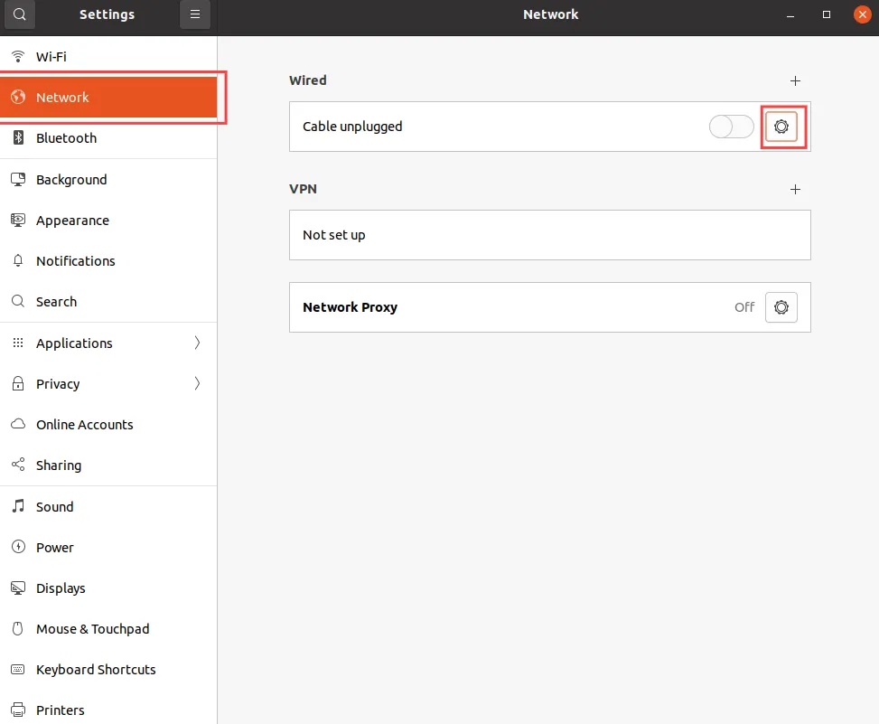 Go to the Network tab in settings and enter Wired settings.